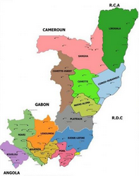 Administrativement, dix (10) départements se partagent le territoire national : la Likouala, la Sangha, la Cuvette, la Cuvette Ouest, les Plateaux, le Pool, la Bouenza, le Niari, le Kouilou et la Lékoumou, subdivisé en sous-préfectures et en communes ; auxquels s’ajoutent les départements de Brazzaville et de Pointe-Noire.